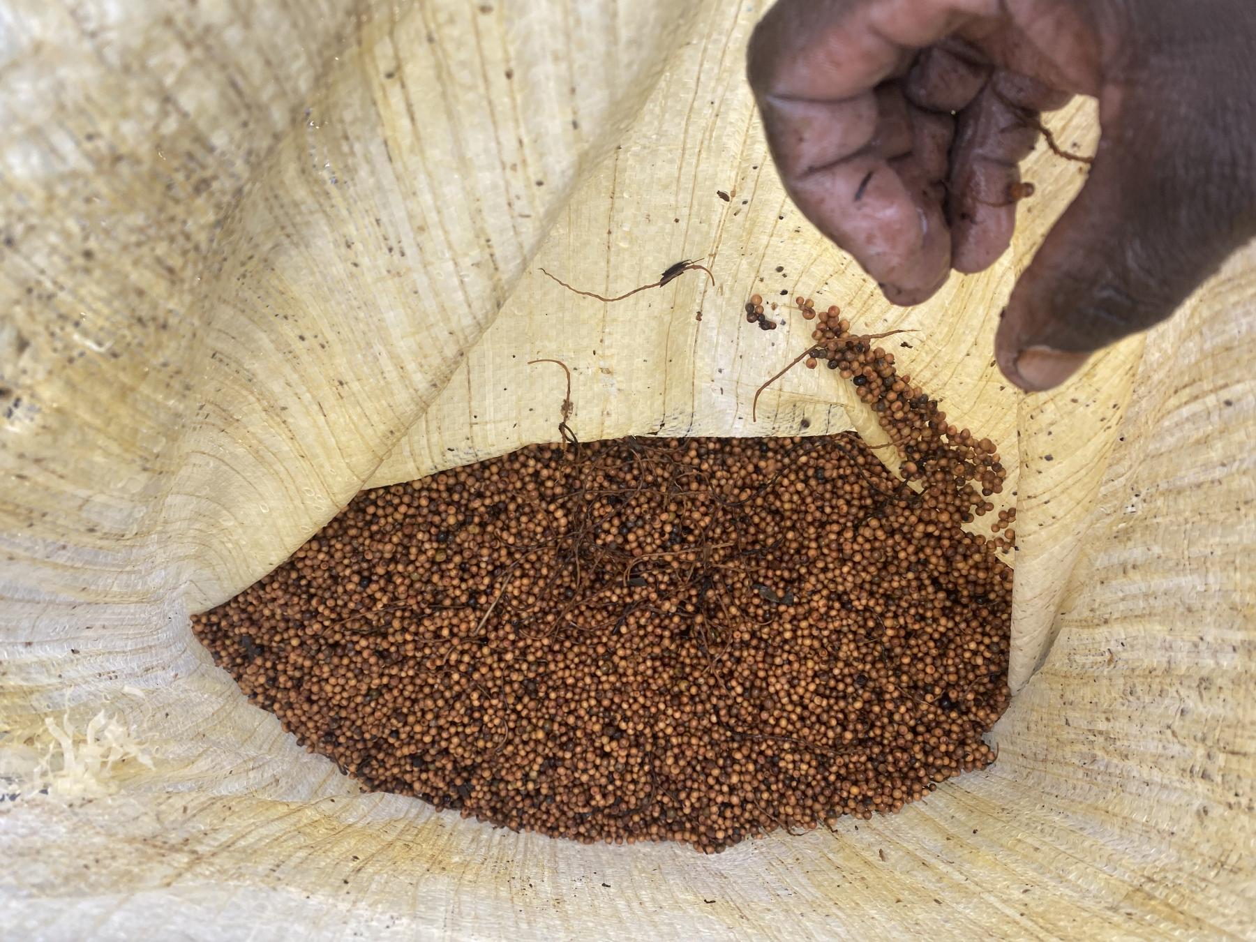 Au fil des années, Landry repique de nouvelles plantes. Il n’a plus besoin de semences car il prélève le matériel végétal sur ses jeunes plants. En 2017, trois ans après les premiers plantings, c’est la première récolte : 24 kilogrammes de poivre blanc. L’acheteur propose de les lui prendre à 11 300 Francs CFA le kilo. Landry n’en revient pas.
