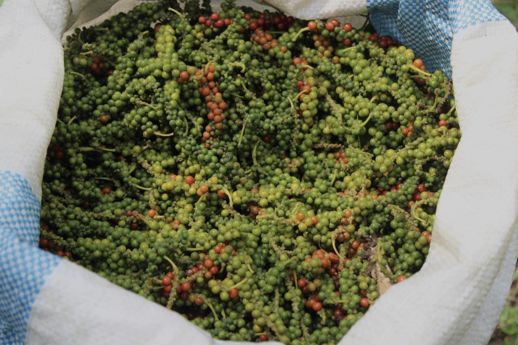 Des grappes de poivre récoltés dans la plantation de Landry Moukoue Djonatchoua. Photo: Josiane Kouagheu/ Agripreneurs d’Afrique