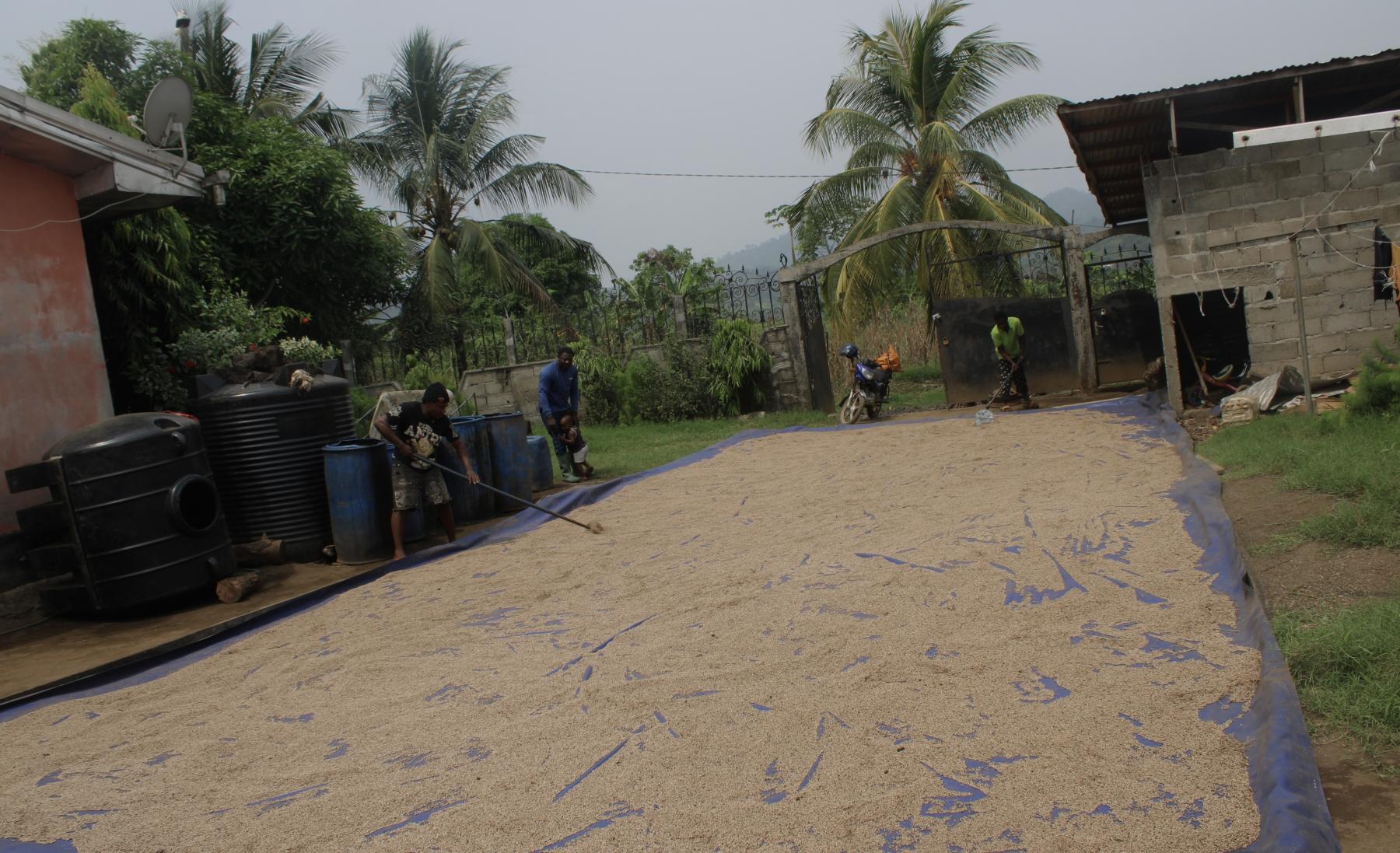Dans la cour de sa maison construite grâce au poivre dans un quartier de Penja, Landry, tout juste rentré des champs, sirote sa bière en regardant les graines blanches qui sèchent au soleil sur une large bâche. Une fois récoltées, les grappes sont trempées dans des tonnaux où elles se décomposent pendant plusieurs semaines. Les graines se détachent. Lavées, séchées et tamisées, elles sont prêtes pour la vente. « Ça m'a permis d'avoir une famille. J'ai trois enfants », dit avec fierté l'agriculteur.