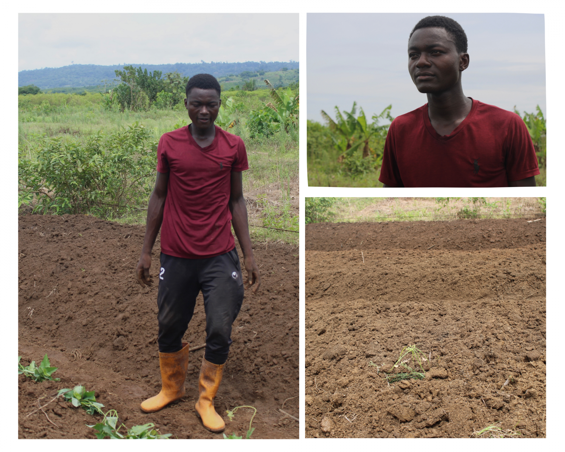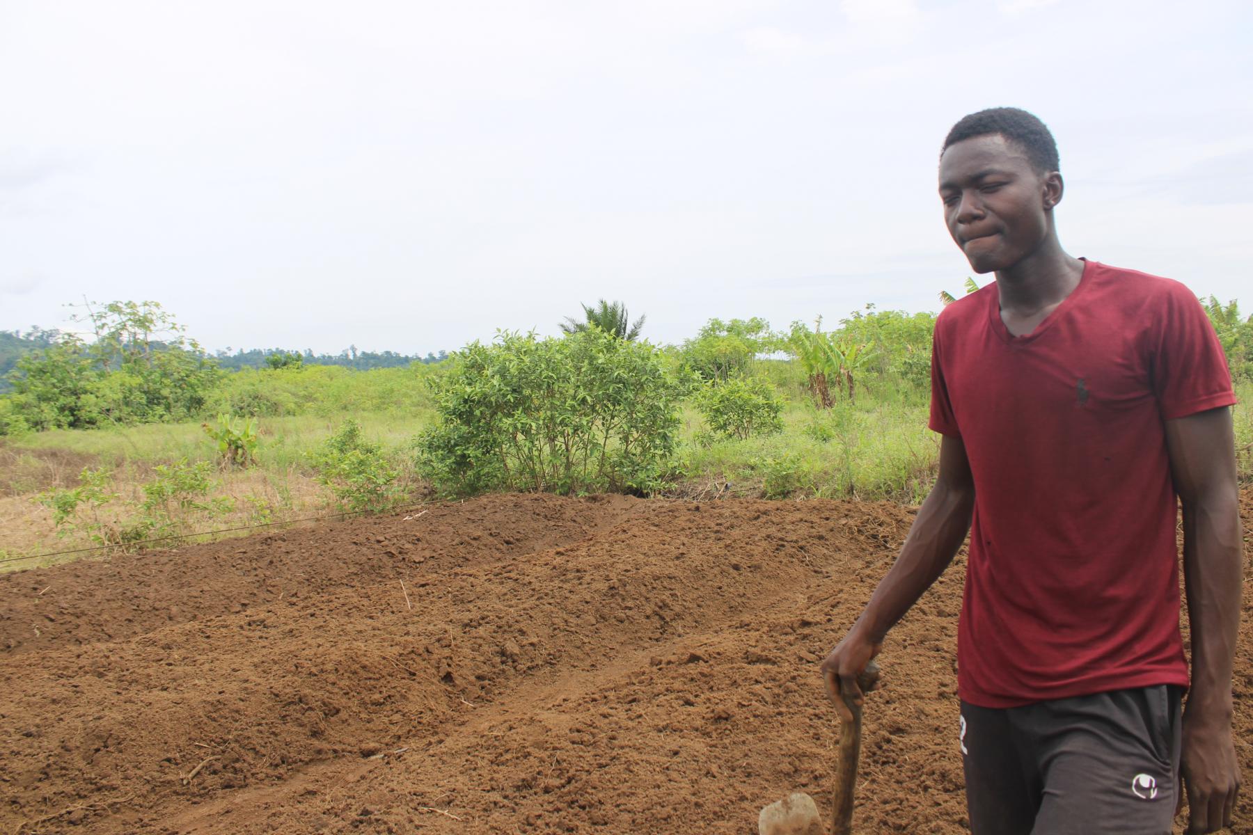 Kennedy compte y cultiver de la patate douce. Son objectif est de réinvestir l’argent de sa future récolte dans un « autre » champ, plus grand. Le jeune fermier est sûr de réussir. La faillite ne semble pas faire partie de son vocabulaire actuellement. Il mise sur son expérience. Kennedy s’est formé sur le tas auprès de son agricultrice de mère donc il est « très proche ». « Ma mère m’aime tellement », avoue ce cadet et unique garçon d’une fratrie de trois enfants.