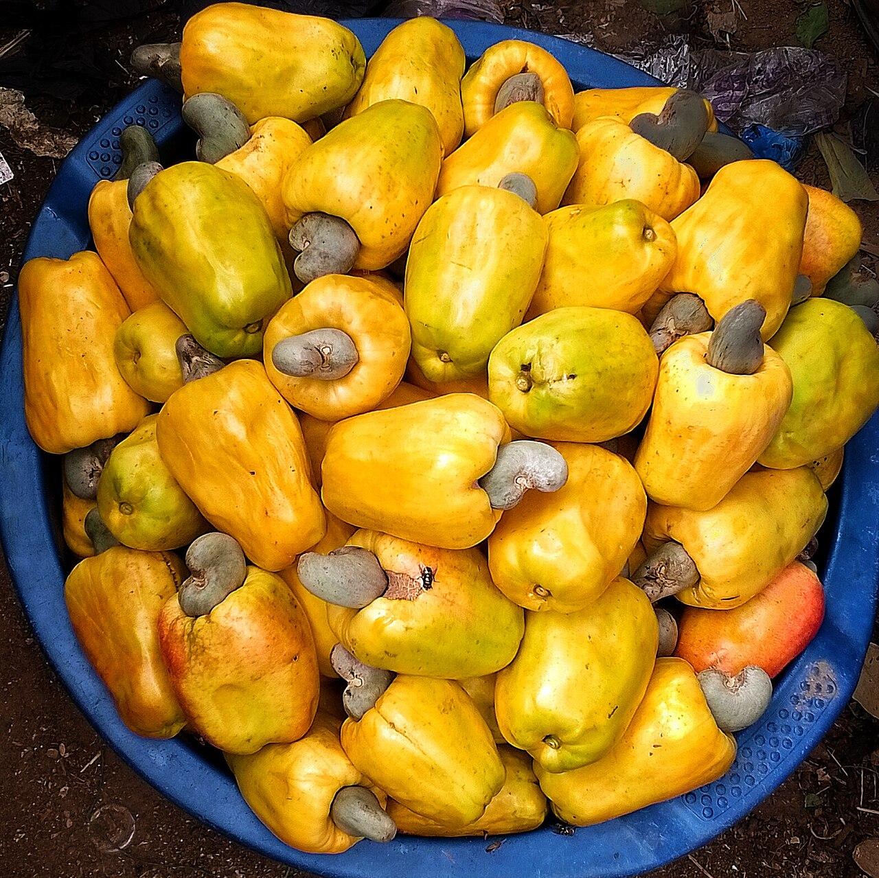 Des pommes de cajou. Photo Charipearl via Wikimedia Commons.