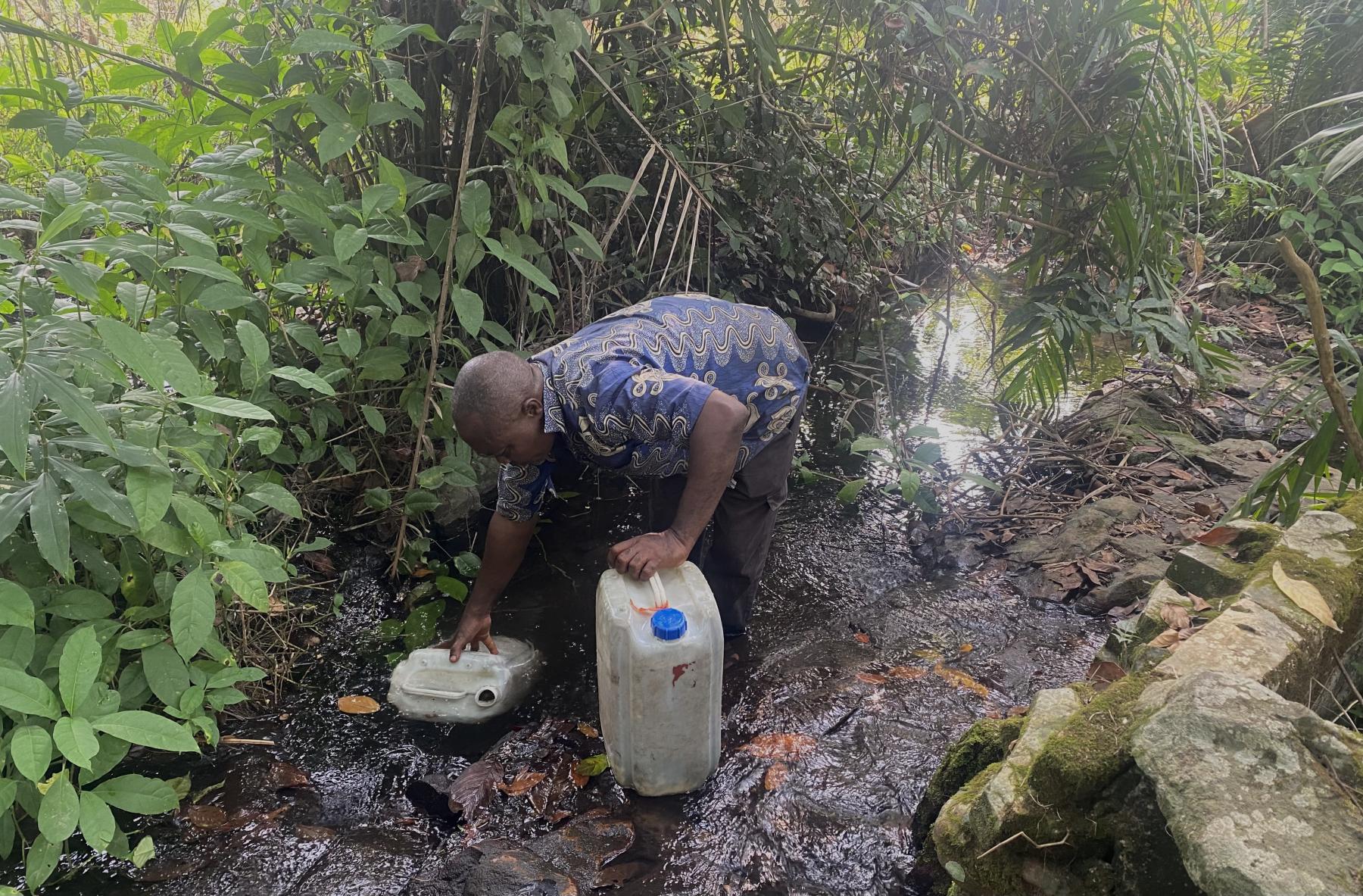 Guy Merlin Tchamtchou puise de l’eau. Photo: Josiane Kouagheu / Agripreneurs d’Afrique