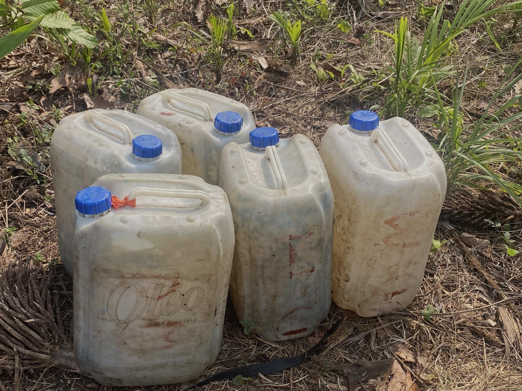 Patiemment, il remplit, l’un après l’autre, les récipients. Il les charge à nouveau sur sa moto et remonte, non sans difficulté, la petite pente menant à sa plantation. Il décharge et entame l’arrosage de ses poivriers aux feuillages verdoyants.