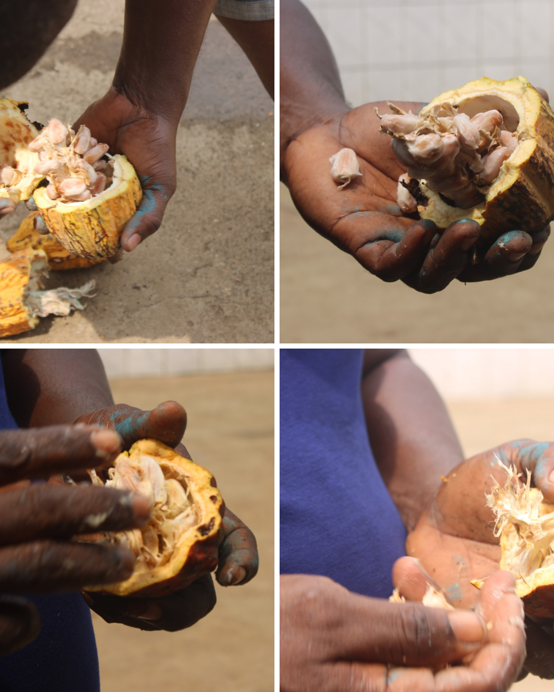 Vous avez actuellement 3400 plants dont environ 2000 pots de cacao. Comment se passe le processus de semis pour la pépinière ?