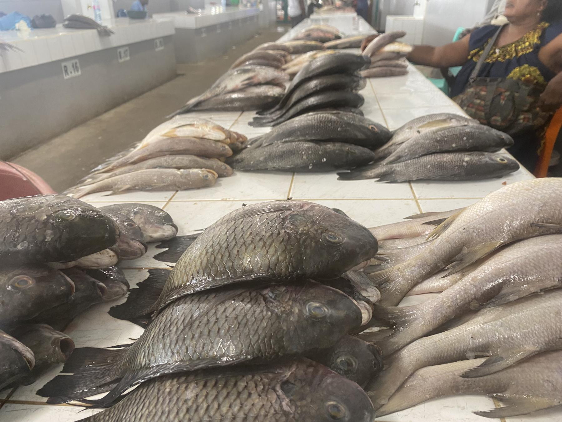 « Je l’ai acheté à 25 000 Francs », tente de convaincre la commerçante. L’acheteuse, pull à capuche porté par-dessus une robe à pois, tourne et retourne le poisson, hésite, puis propose à voix basse: « j’ai 22 000 Francs». Dorcas observe tour à tour la dame, son brochet et secoue négativement la tête. « C’est un marché qui donnait avant. Maintenant, il y a la chute partout », grogne celle qui vend carpes, machoirons, dorades et autres espèces depuis 23 ans.