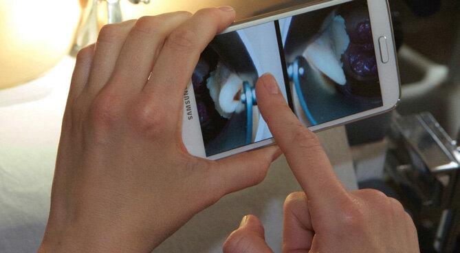 Smartphone digital images acquisition after VIA (D-VIA) and VILI (D-VILI) procedures. This allow to slide between pictures on the Smartphone for diagnosis. It is a simple and reproducible procedure that facilitates the identification of lesion. Image by Pierre Vassilakos